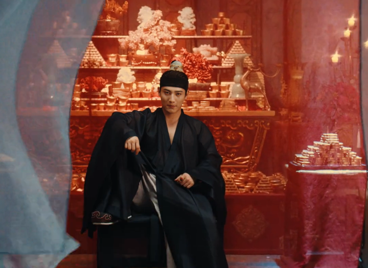 但他演的实在太油了,在各自拿出看家本事讨好女主的环节,他袒胸露乳瘫坐在那里,悠悠扯下红幔,露出金灿灿的金银珠宝。